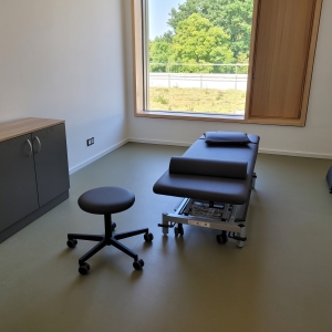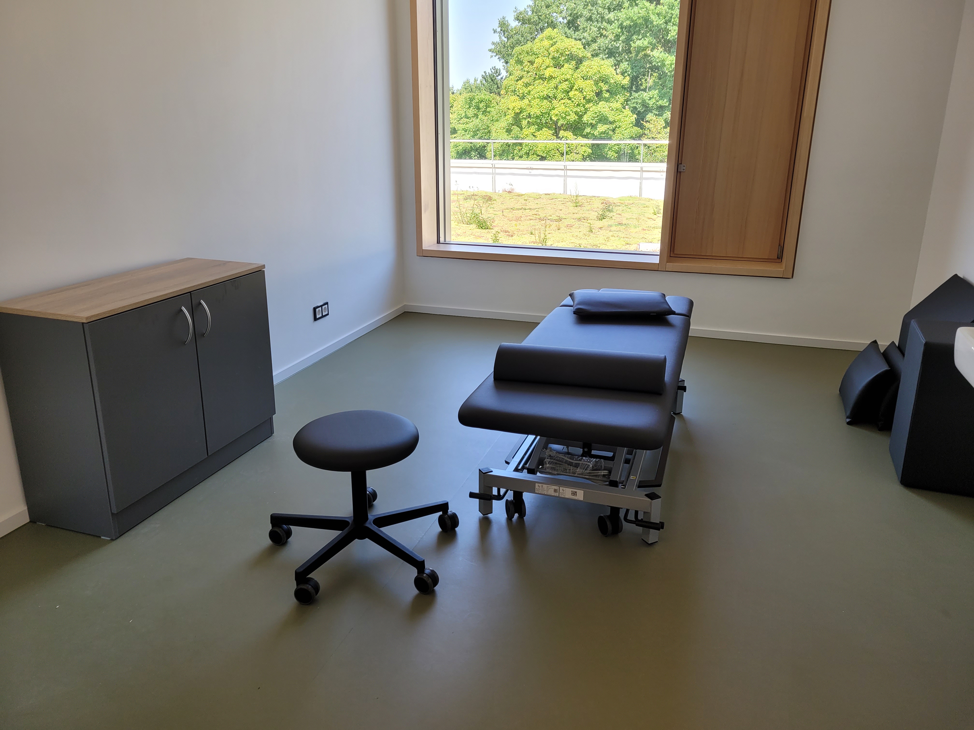 Im Obergeschoss befindet sich eine Therapiepraxis mit einem KGG-Raum. Hier sollen die Mitarbeiter innerhalb von drei Tagen einen Termin erhalten und im Optimalfall ihr Training nach der Rekonvaleszenz im Studio fortführen.
