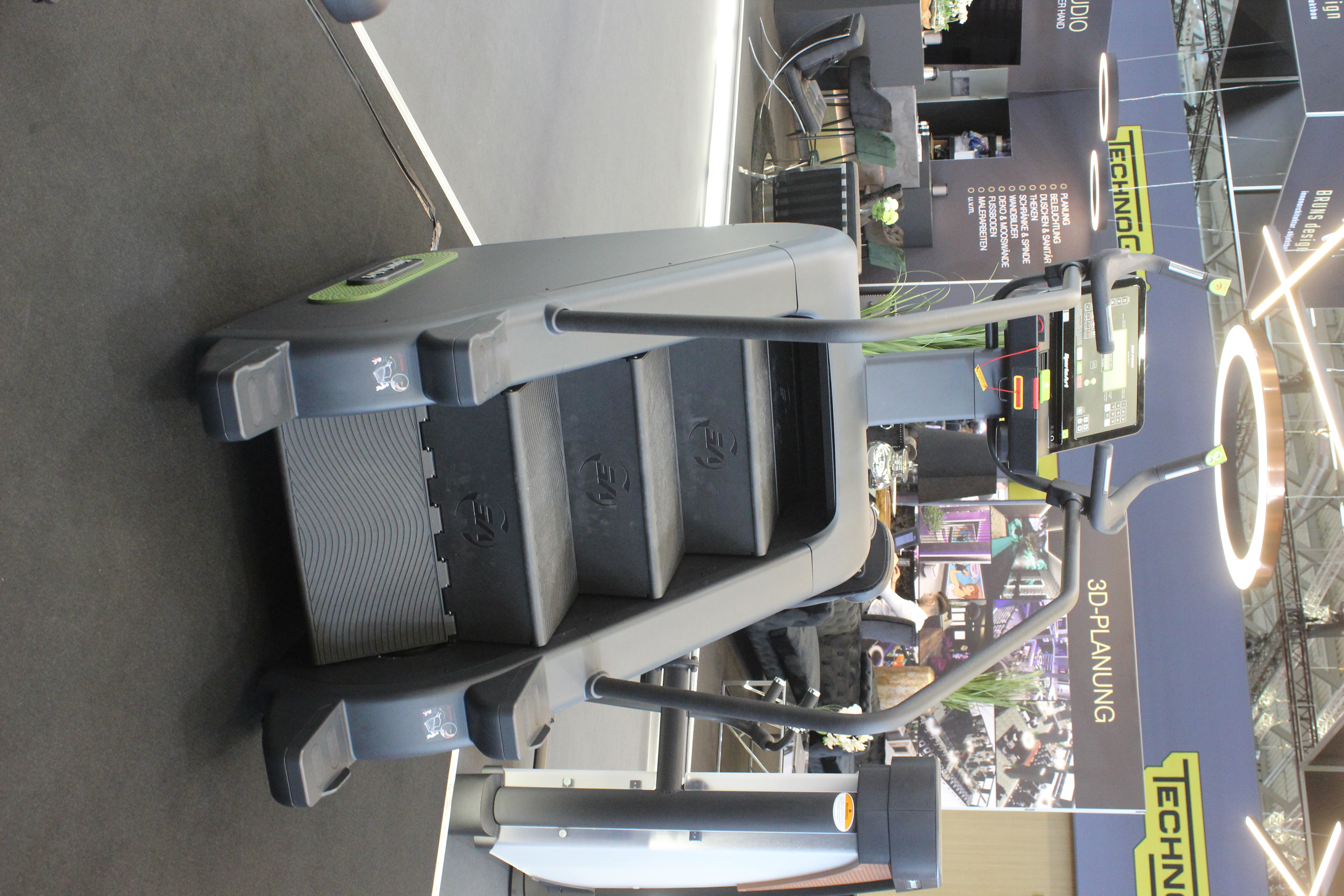 Der diesjährige Stand lief dazu passend unter dem Motto ‚Green Fitness Solutions‘. Um den Ansprüchen der Kunden gerecht zu werden, wurden auf der wichtigsten Fitnessmesse drei neue Geräte vorgestellt: ein Treppensteiger, ein Rudergerät und ein FrontEllipsentrainer.