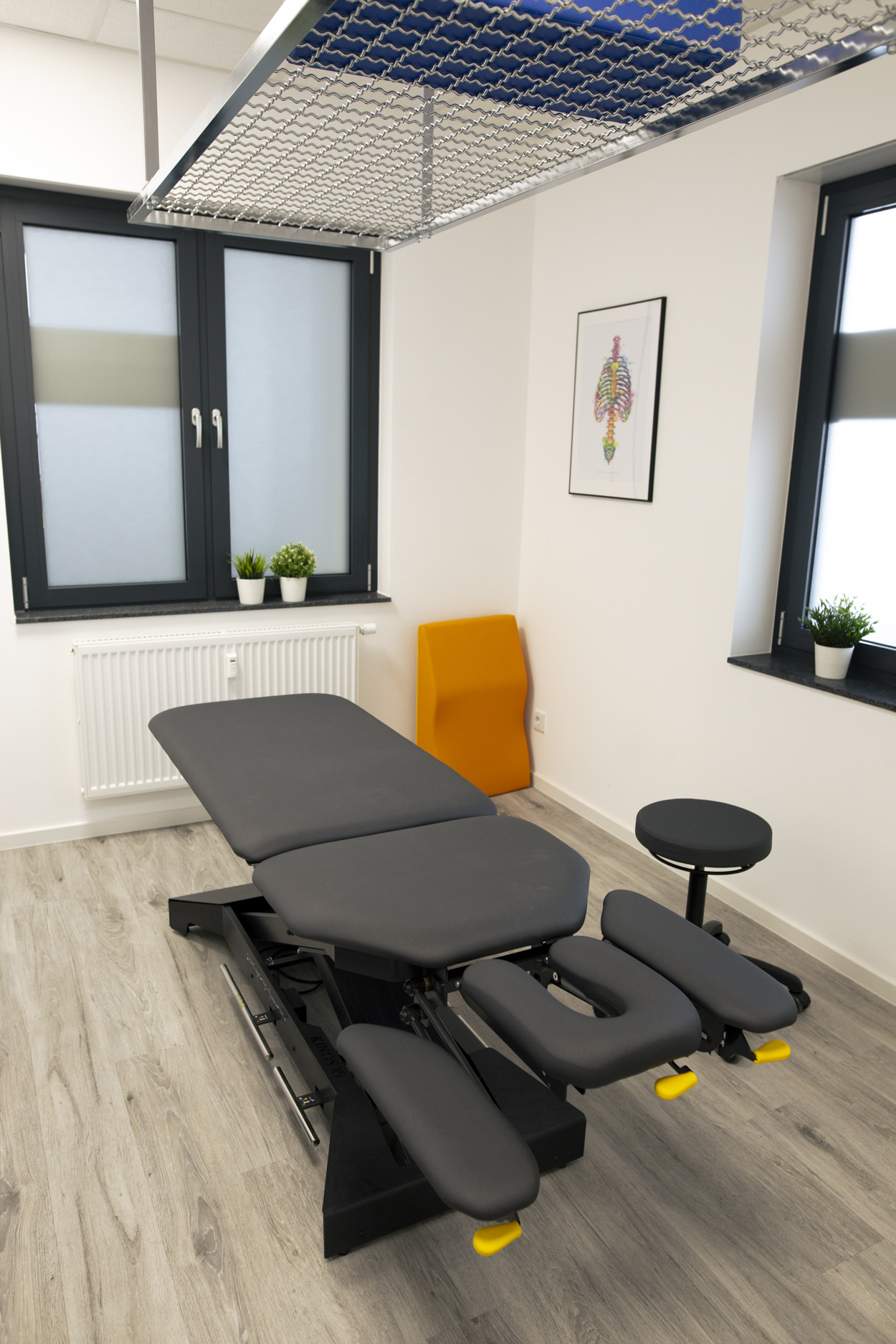Da es sich um einen ebenerdigen Standort handelt, ist er für alle Patienten gut erreichbar. Deibert hat sich für relativ große Räume entschieden, um genug Platz für die Arbeit zu haben. Durch einen verstärkten Schallschutz will er die Privatsphäre der Patienten optimieren. Seine Mitarbeiter und er behandeln eine recht breite Palette an Beschwerden: Kinder mit Skoliose, Schwangere, Menschen mit orthopädischen oder akuten Problemen sowie auch ein Frauenhandballteam.