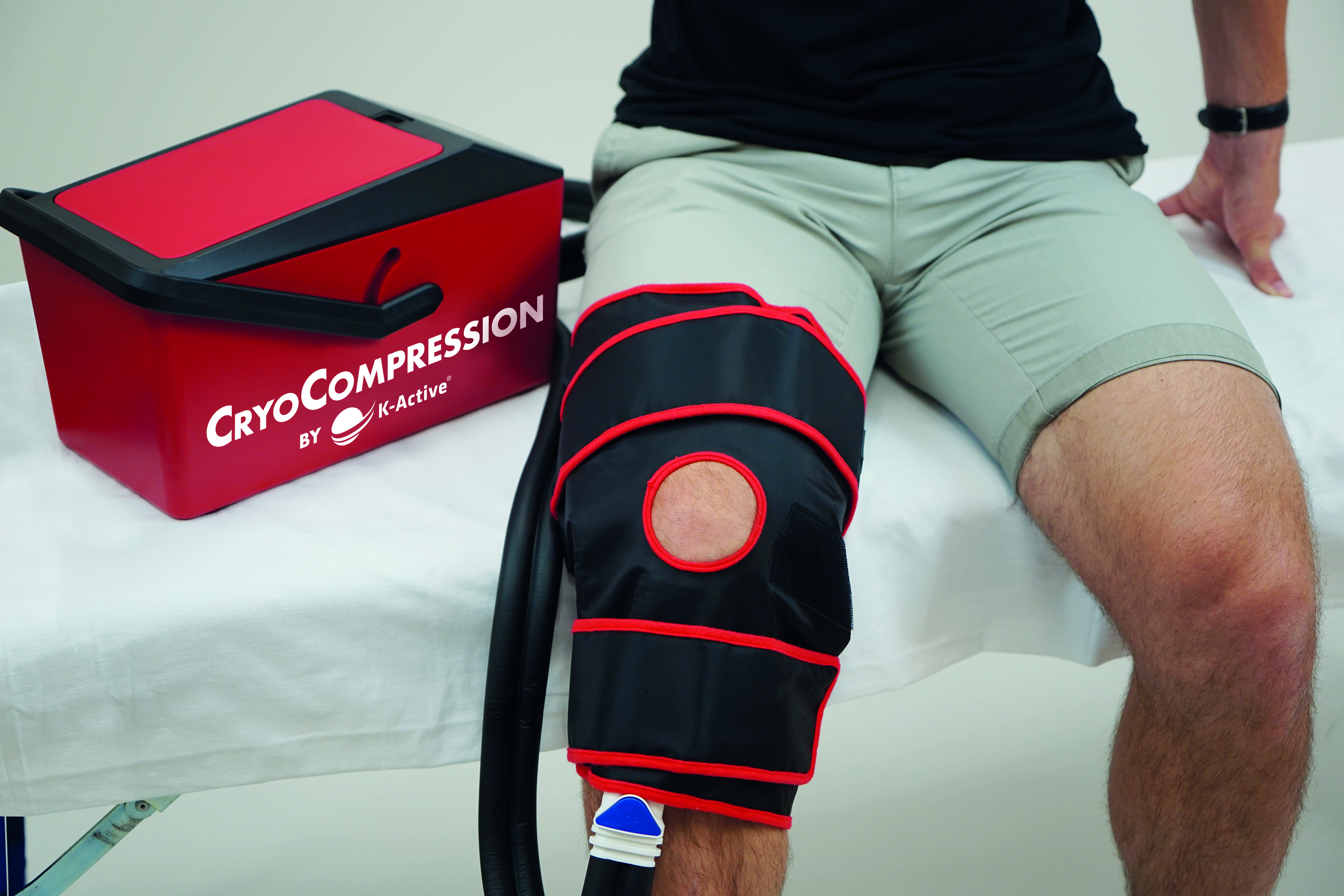 CryoCompression by K-Active® ist ein fortschrittliches Kälte- und Kompressionssystem, bestehend aus einem Kühler und einer anpassbaren Manschette, die miteinander verbunden sind. Es gibt vier verschiedene Manschetten für Fuß, Knie/Oberschenkel, Hüfte und Schulter. Der Kühler kann bei Bedarf mit Eiswürfeln oder Kühl - akkus gekühlt bzw. reguliert werden.