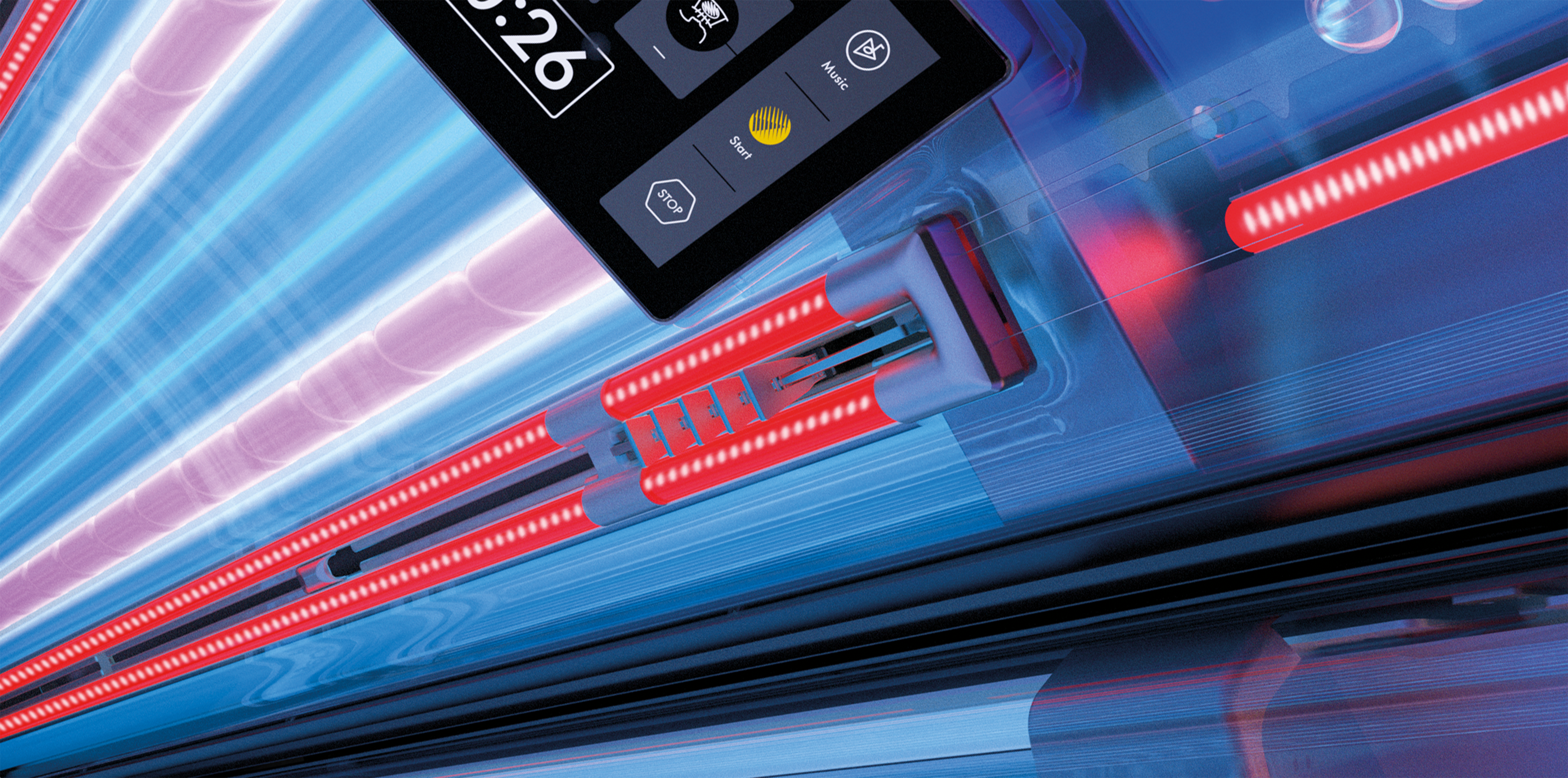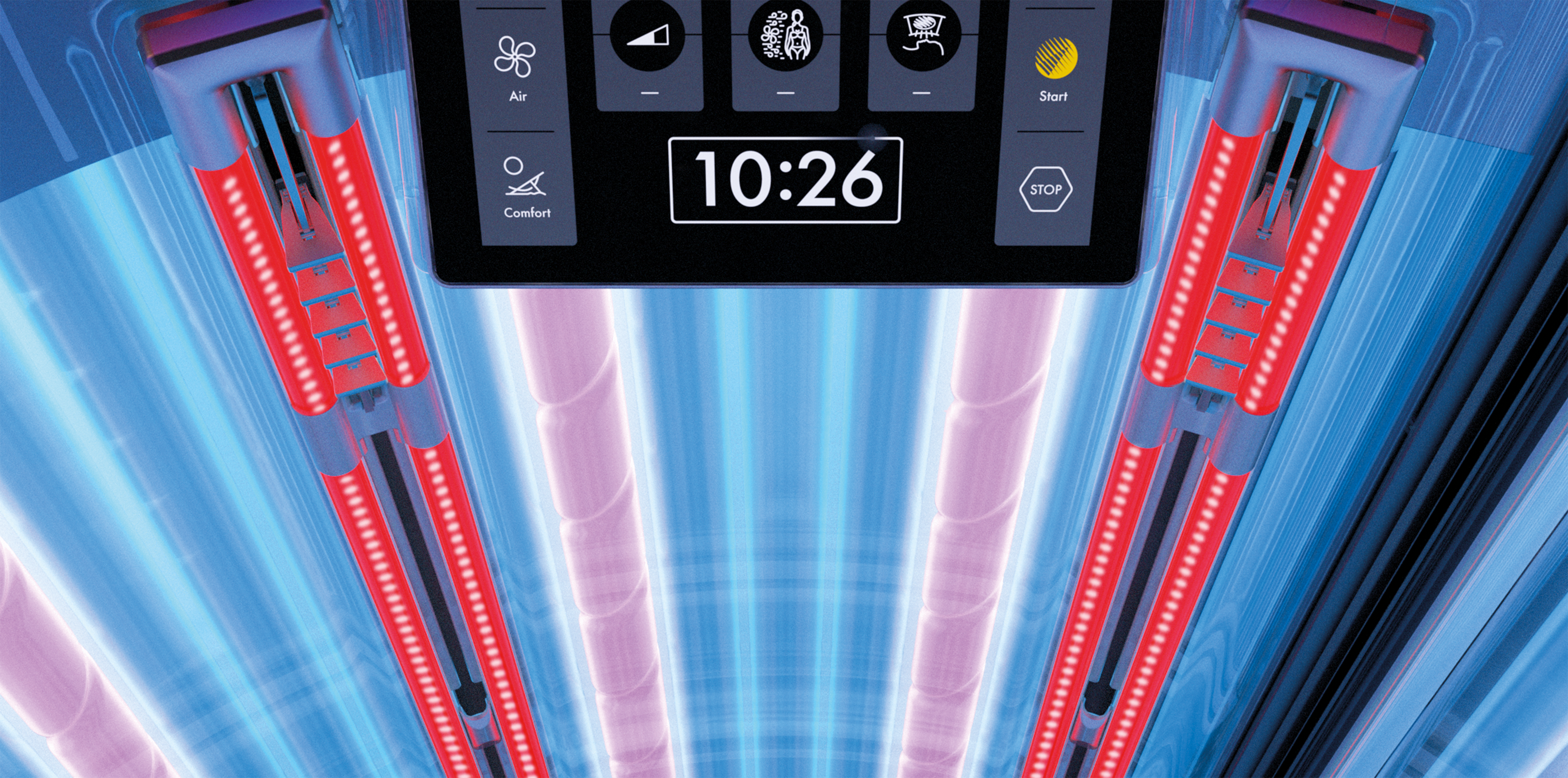 Das Konzept SunSphere Pro baut auf der bestehenden LED Technologie auf, und erzielt mit seiner Integration von speziell entwickelten UVB-LEDs und Nano Beauty-LEDs sogar eine 10% bessere Bräunungs-Performance. Dieses Zusammenspiel von Wellenlängen gepaart mit der perfekten Ausleuchtung der Glaslinsen und der Nachhaltigkeit dank langlebiger LEDs, ist ein unmissverständliches Statement.