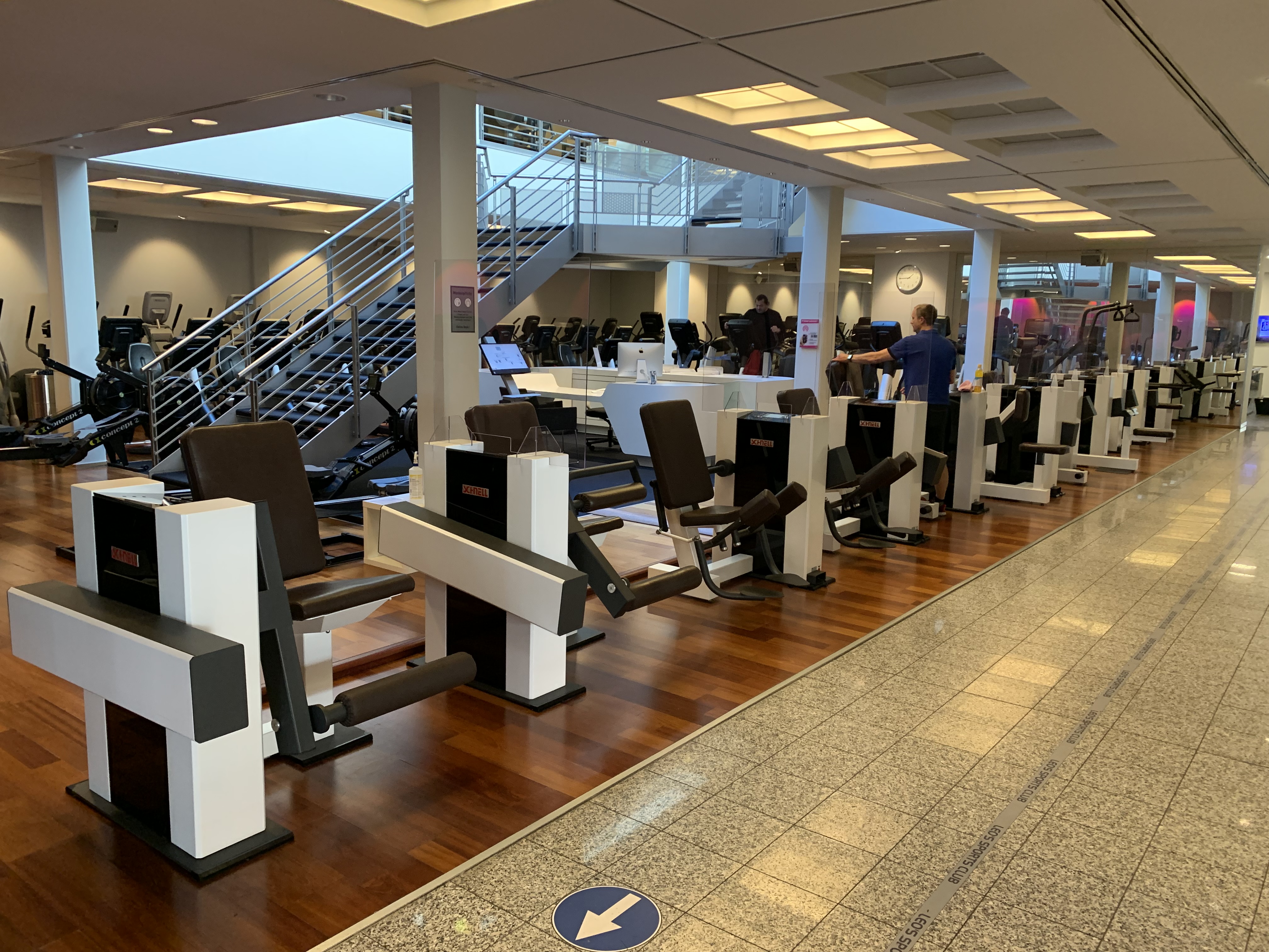 Mit einem Kaffee nehmen wir Platz in der neu gestalteten Lounge. Seiz hat viel erlebt bei seinem Werdegang vom Trainer bis zum Mitinhaber des LEO’S. Er kennt die Branche seit nunmehr 25 Jahren und ist dementsprechend gut informiert und bestens vernetzt. Wir verlassen den stylisch gelungenen und zum Verweilen nach dem Training einladenden Theken- und Loungebereich und starten einen Rundgang durch das mehr-stöckige Studio. Uns begegnen dabei aufmerksame und serviceorientierte Mitarbeiter.