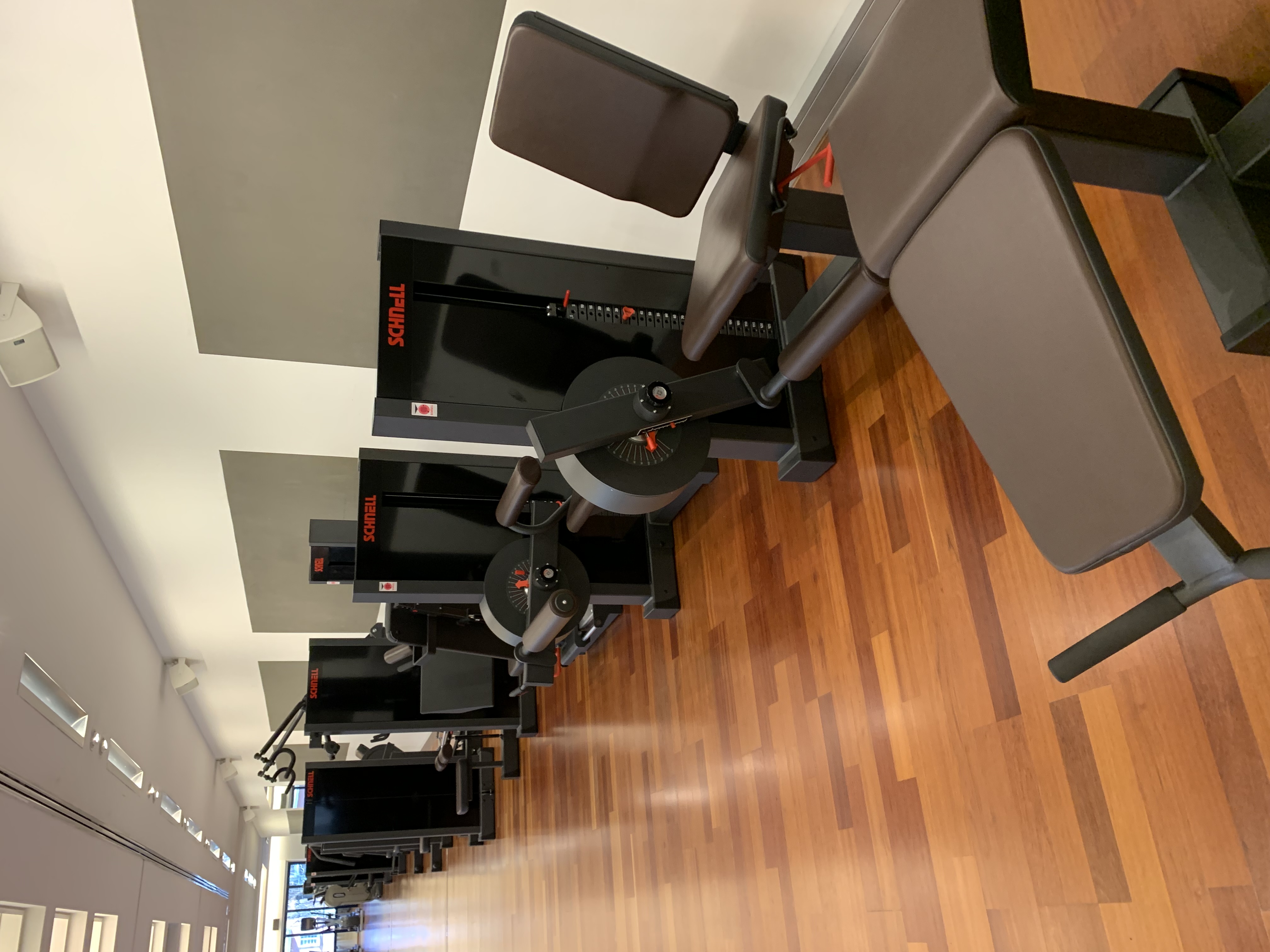 Im Erdgeschoss befindet sich neben den Büros ein schöner Gerätepark, der aus Krafttrainingsgeräten der Synchro-Linie der Firma SCHNELL sowie überwiegend mit Cardio-Geräten von LIFEFITNESS und PRECOR ausgestattet ist. Weiter geht es zu zwei Group-Fitnessräumen, die auf dem neuesten Stand der Technik sind. Eine ausgeklügelte Klima-Anlage bietet ein angenehmes Raumklima bei jeder Wetterlage. Beschallung und Belichtung können mittels einer Steuerung von jedem Trainer individuell bedient werden.