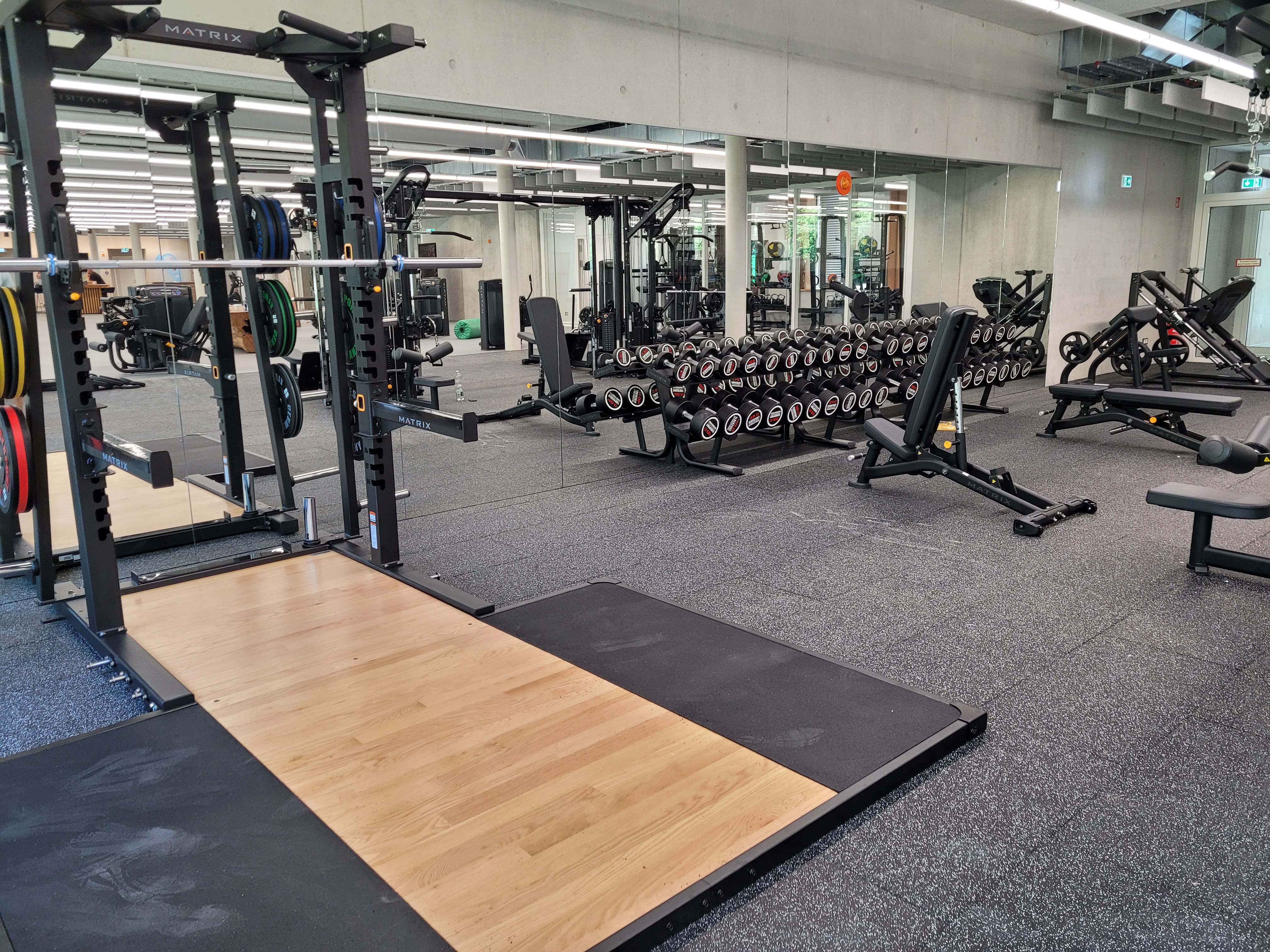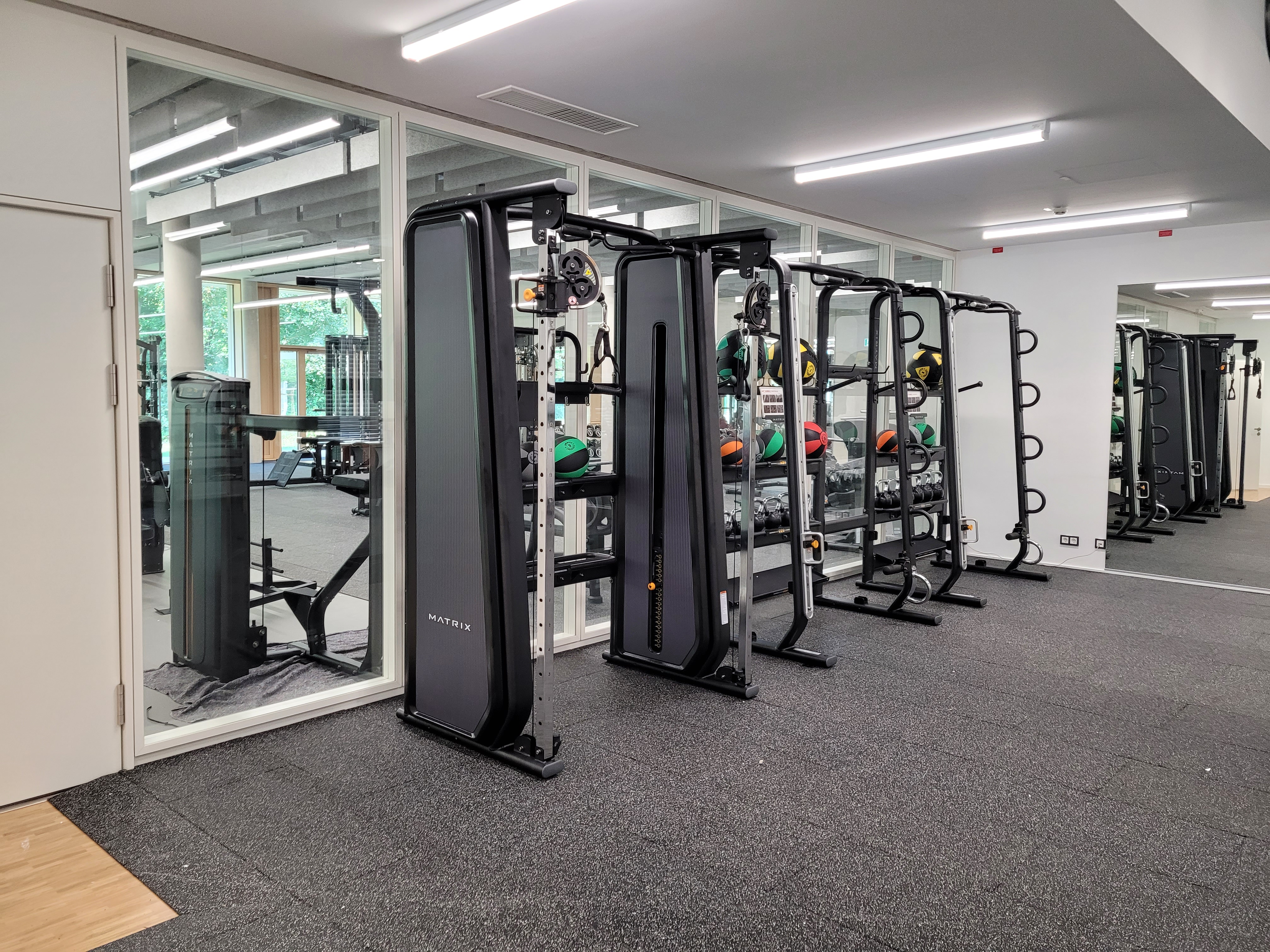Dafür steht eine große Fläche mit einem breiten Geräteangebot bereit. Die einzelnen Bereiche (Kraft, Cardio, EGYM-Zirkel sowie Funktional) wurden räumlich von der Physiotherapie getrennt. Zusätzlich gibt es ein breites Kursangebot und auch Präventionskurse werden hier stattfinden. Ein Outdoorbereich steht ebenfalls zur Verfügung.