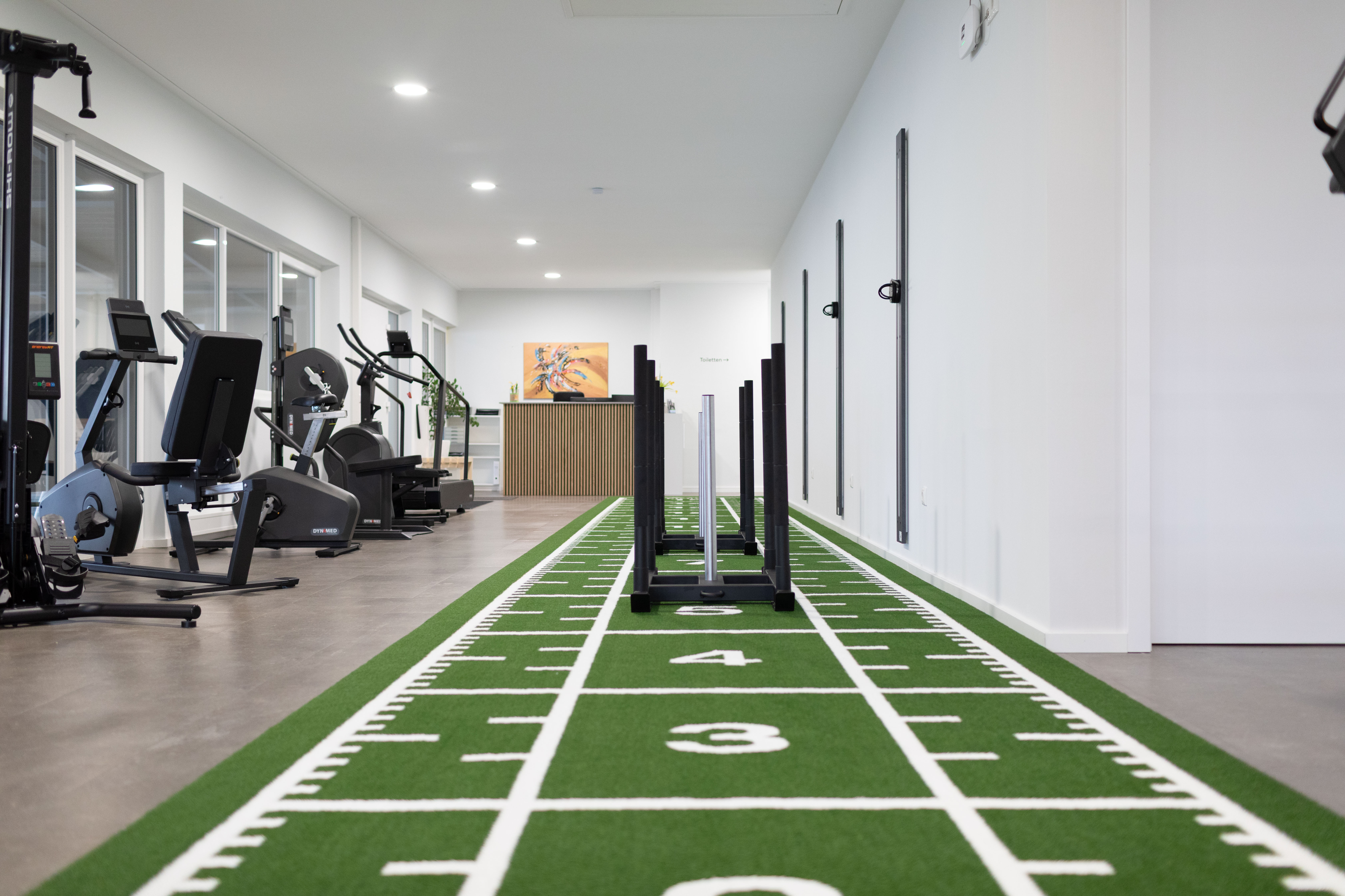 Angesichts des rasanten Tempos bin manchmal selbst ich nicht mitgekommen bei dieser Mega-Reise. Pausen? Fehlanzeige! Und wenn ich wieder angefordert wurde, stand ich parat, denn ich bin doch nicht „reisemüde“. Naila liegt eine knappe halbe Autostunde entfernt vom ersten Standort der beiden in Gefell. Bei meiner ersten Visite waren die Räumlichkeiten noch Büroräume einer bekannten Marketingagentur. Aber es war sehr beeindruckend, wie Markus und Daniel mir im virtuellen Rundgang eine neue Reha-Welt beschreiben konnten. Und von da an ging es ‚ab‘: wunderbar zu erleben, wie mit Engagement, Eigenleistung und Netzwerk in kürzester Zeit und so ressourcenschonend wie möglich ein wirklich, wirklich zauberhaftes Physio-Reha-Sportzentrum entstanden ist.