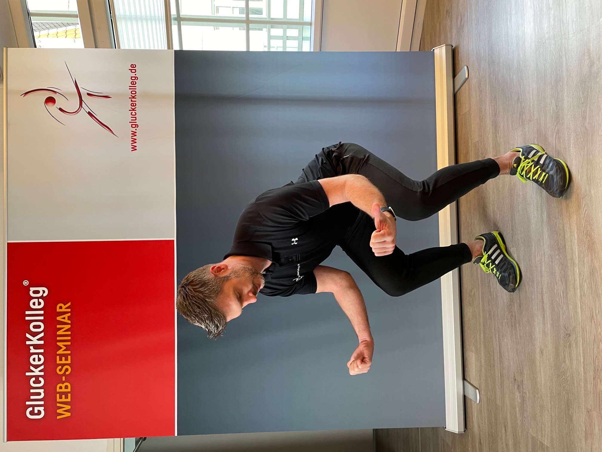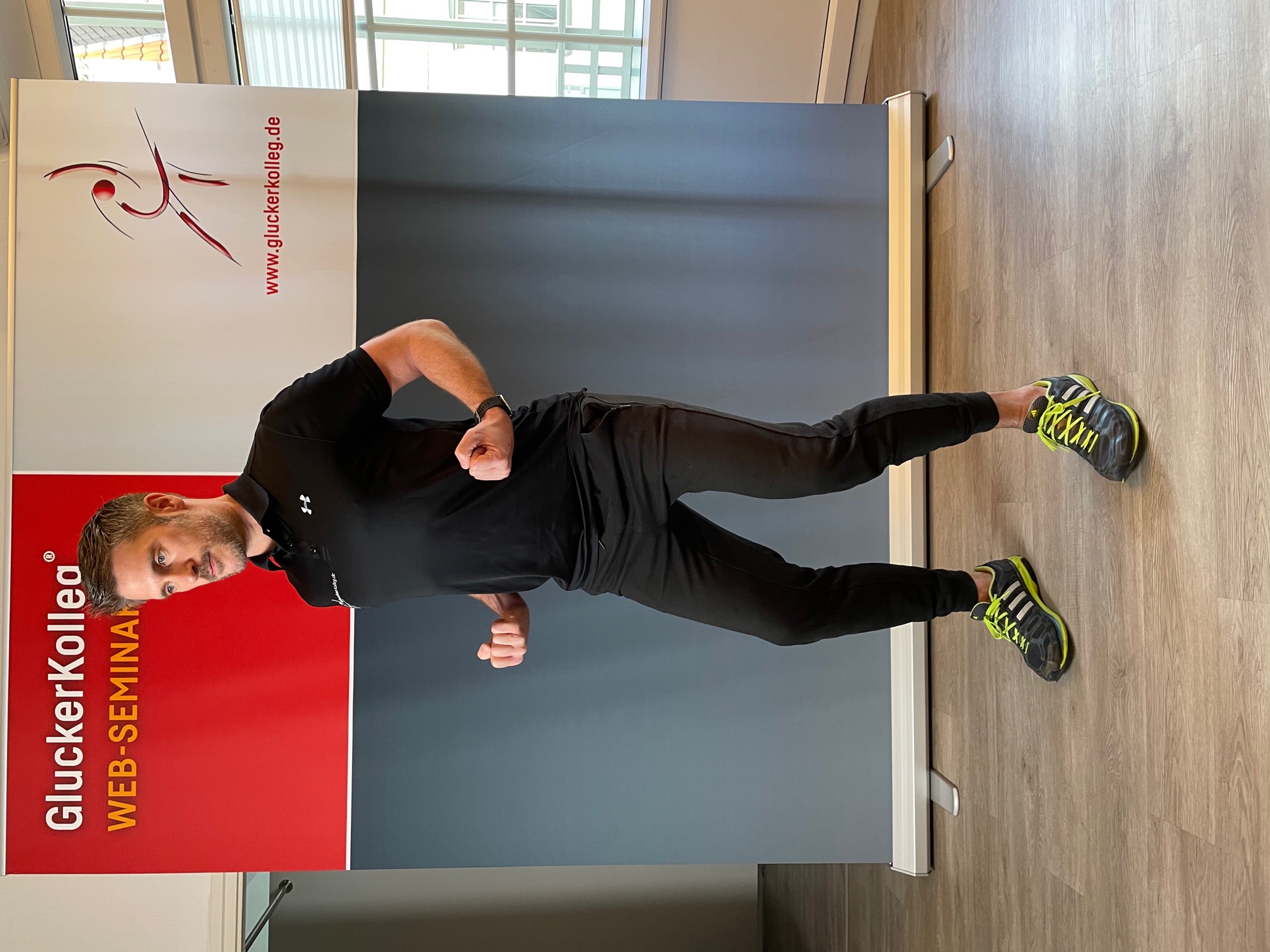 - ››› Zusätzlich in Gedanken den Boden mit den Füßen auseinanderschieben → betont die Abduktoren