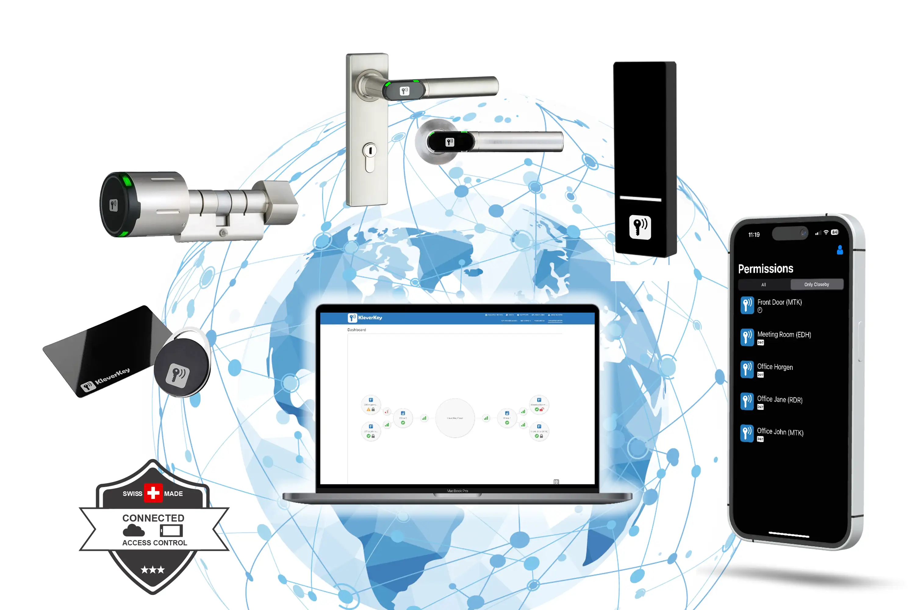 KleverKey ist eine digitales Schließsystem für Trainings- und Therapiestätten. Zutritte lassen sich einfach per App, Transponder oder per Fernzugriff steuern. Berechtigungen können flexibel vergeben und verwaltet werden – auch zeitlich begrenzt.- Seestraße 129, 8810 Horgen (CH)