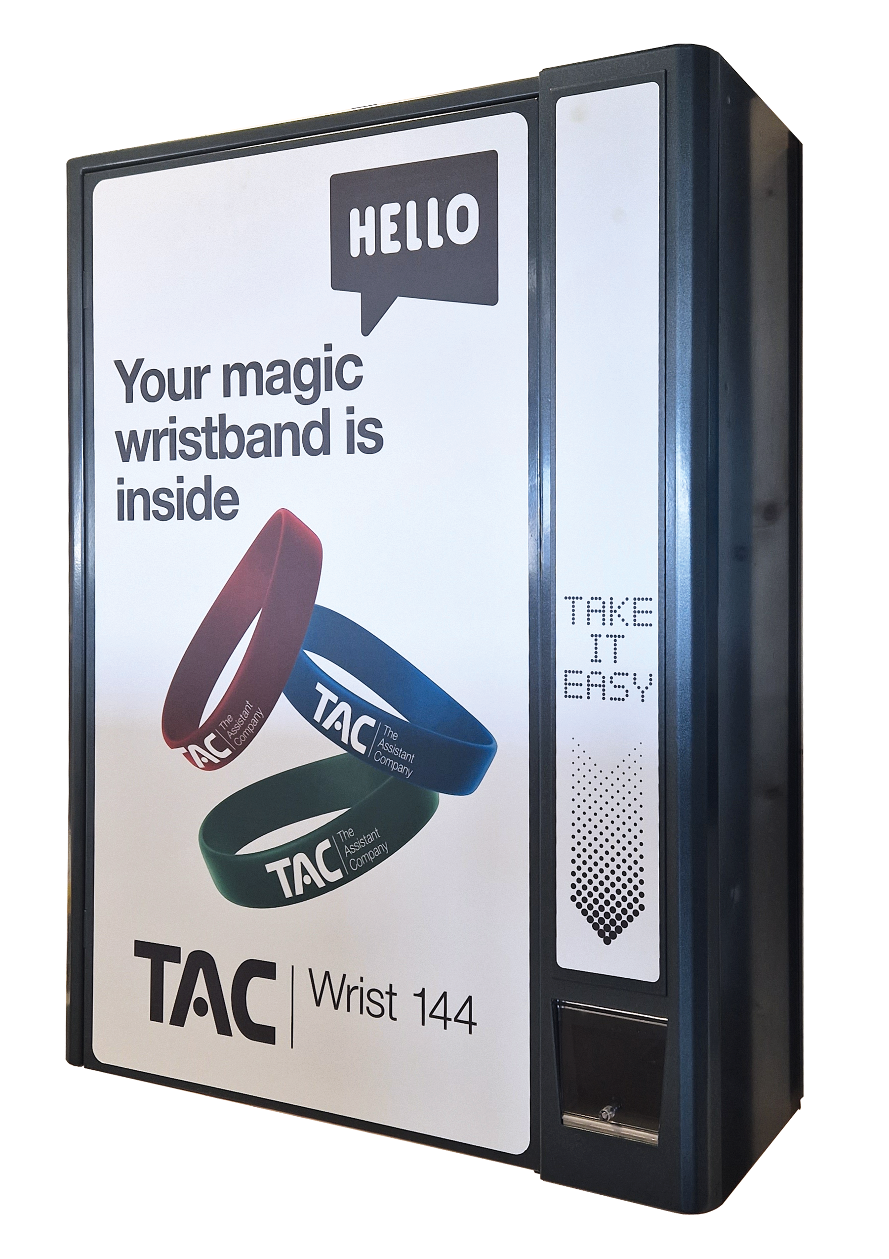 Der TAC|Wrist 144 ist die digitale Lösung zur automatisierten Ausgabe von Zutrittsmedien. Der wandmontierte Automat mit All-In-One Touch PC und Barcodescanner ermöglicht die schnelle, selbstständige Abholung von 144 Armbändern – rund um die Uhr.- Schildbach 211, 8230 Hartberg (A)