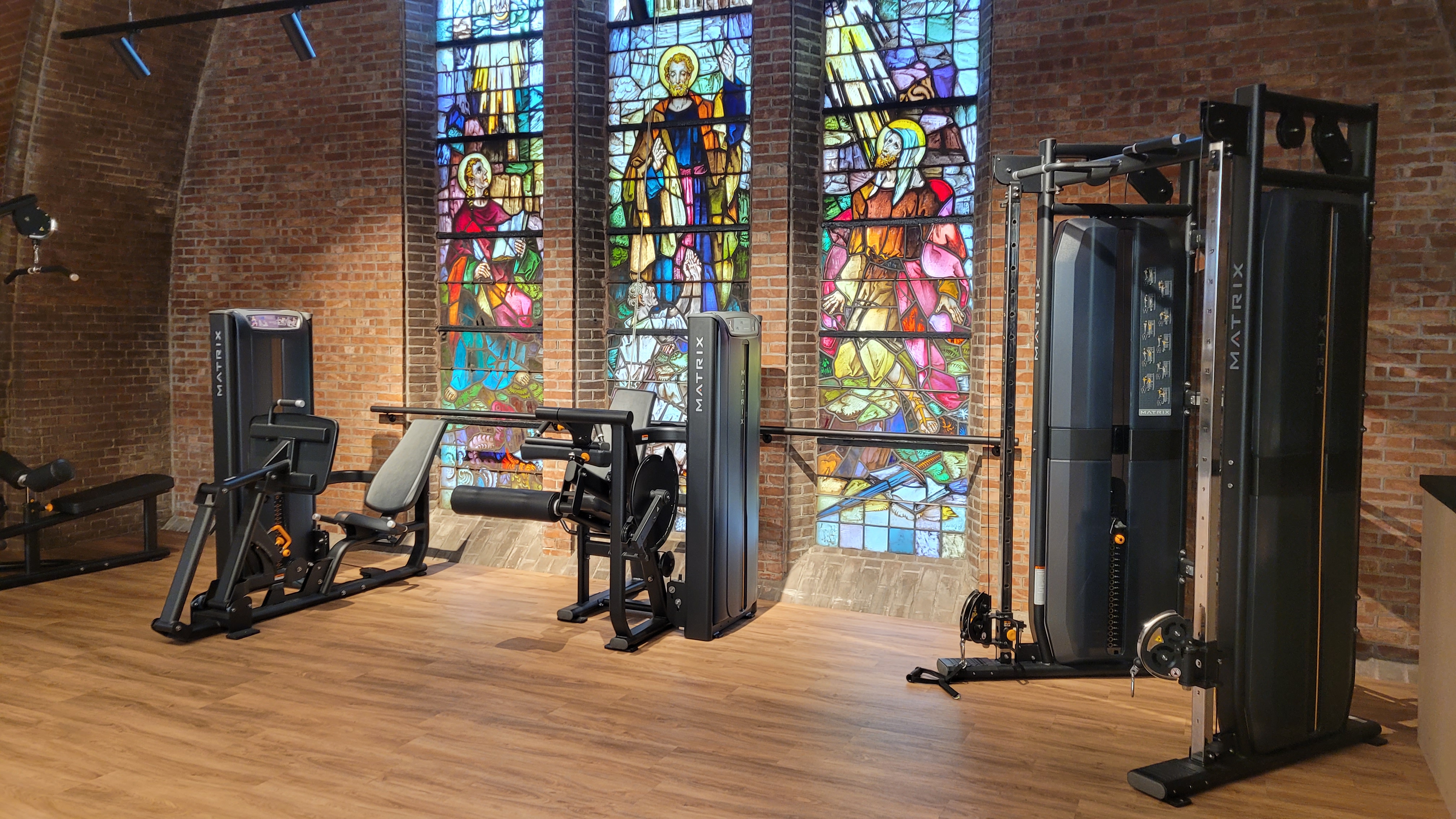 Um die Fläche bestmöglich und auf zwei Ebenen nutzen zu können, wurde rund um das ehemalige Kirchenschiff ein zweistöckiger Anbau angelegt. In diesem befinden sich u.a. Räumlichkeiten für Wellness (Sauna, Eisbad), Group-Fitness und Besprechungen. Im oberen Bereich kommen Cardio-Fans voll auf ihre Kosten.