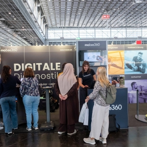 Eines der prägenden Themen der therapie DÜSSELDORF war erneut die Digitalisierung, die mit innovativen Lösungen den therapeutischen Alltag spürbar erleichtern kann. Vorgestellt wurden unter anderem Lösungen für die TI-Anbindung sowie KI-gestützte Software für administrative und diagnostische Anwendungen. Auch computergestützte Therapiegeräte und VR-Technik für den Einsatz in Klinik und ambulanter Praxis waren vertreten.