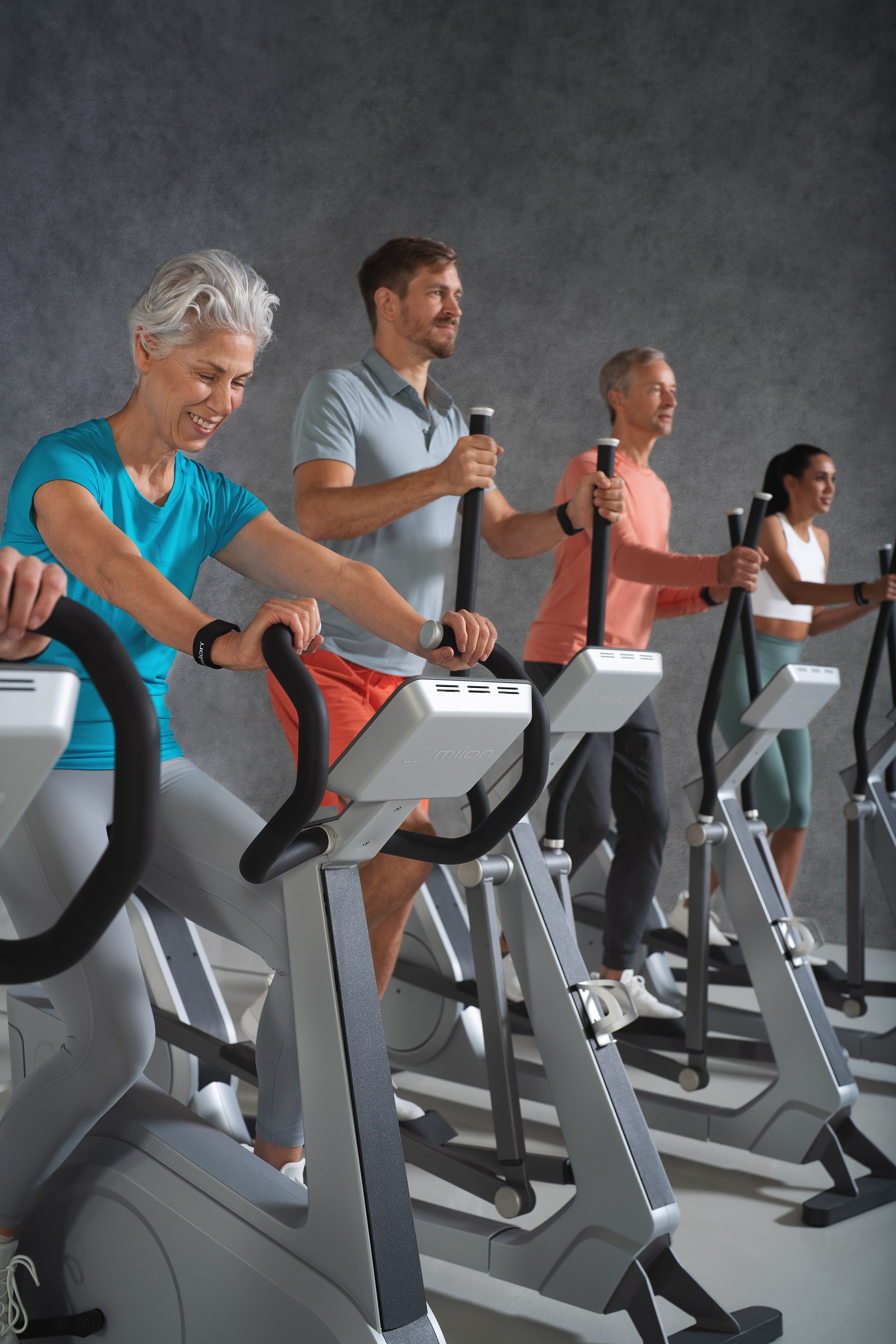 Das Bike LE verfügt über einen verstellbaren Lenker, einen „low entry“ sowie bei Bedarf über „milon vario Pedale“, die manuell perfekt eingestellt werden können. In Verbindung mit gekoppelten Bluetooth Herzfrequenz-Sensoren wird auf diese Weise ein effektives, dokumentiertes und erfolgsversprechendes CardioTraining auf kleiner Fläche – in kurzer Zeit – garantiert.