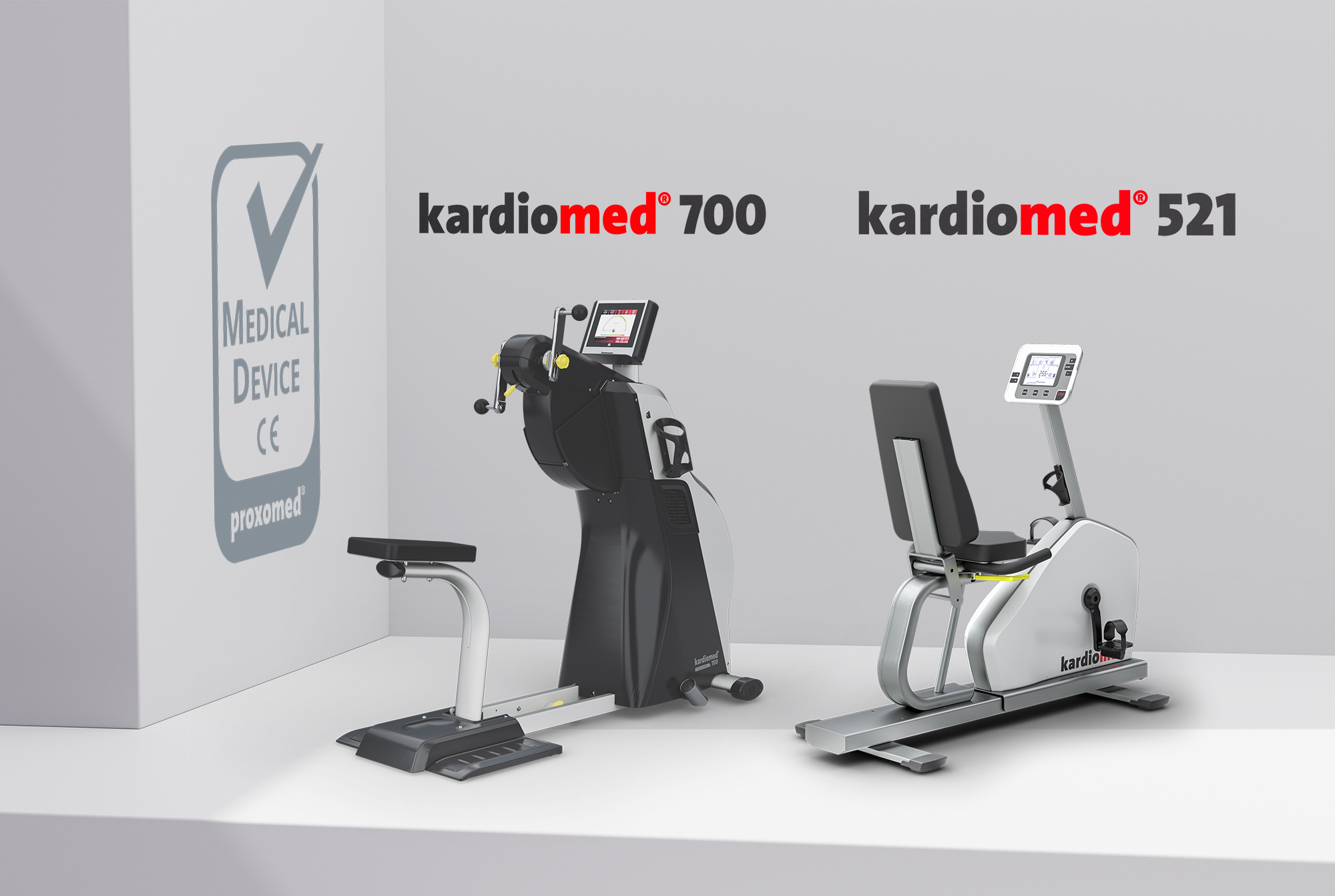 kardiomed 521 und kardiomed 700 für den Gesundheitssport bis zum medizinischen Ausdauertraining, je nach körperlicher Belastbarkeit und Trainingsziel Ihrer Kunden und Patienten. Beide kardiomed-Linien mit Medizinprodukten der Klasse IIa/II b (Laufbänder; exklusive pluto kardiosport) bieten einen hohen Bedienkomfort, elektronische Dokumentation, elektronische Trainingssteuerung, die Schnittstelle zu den Softwaremodulen von proxomed, Herzfrequenzüberwachung/-steuerung (optional), die Verknüpfung mit IPN-Test-Suite (optional) und freien Durchstieg bei den Ergometern.