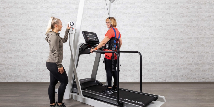 Mit dem neuen gewichtsentlastenden Gerät von HUR ist es Patienten im Rehabilitationsprozess schon frühzeitig möglich, mit einem funktionellen Training zu starten.