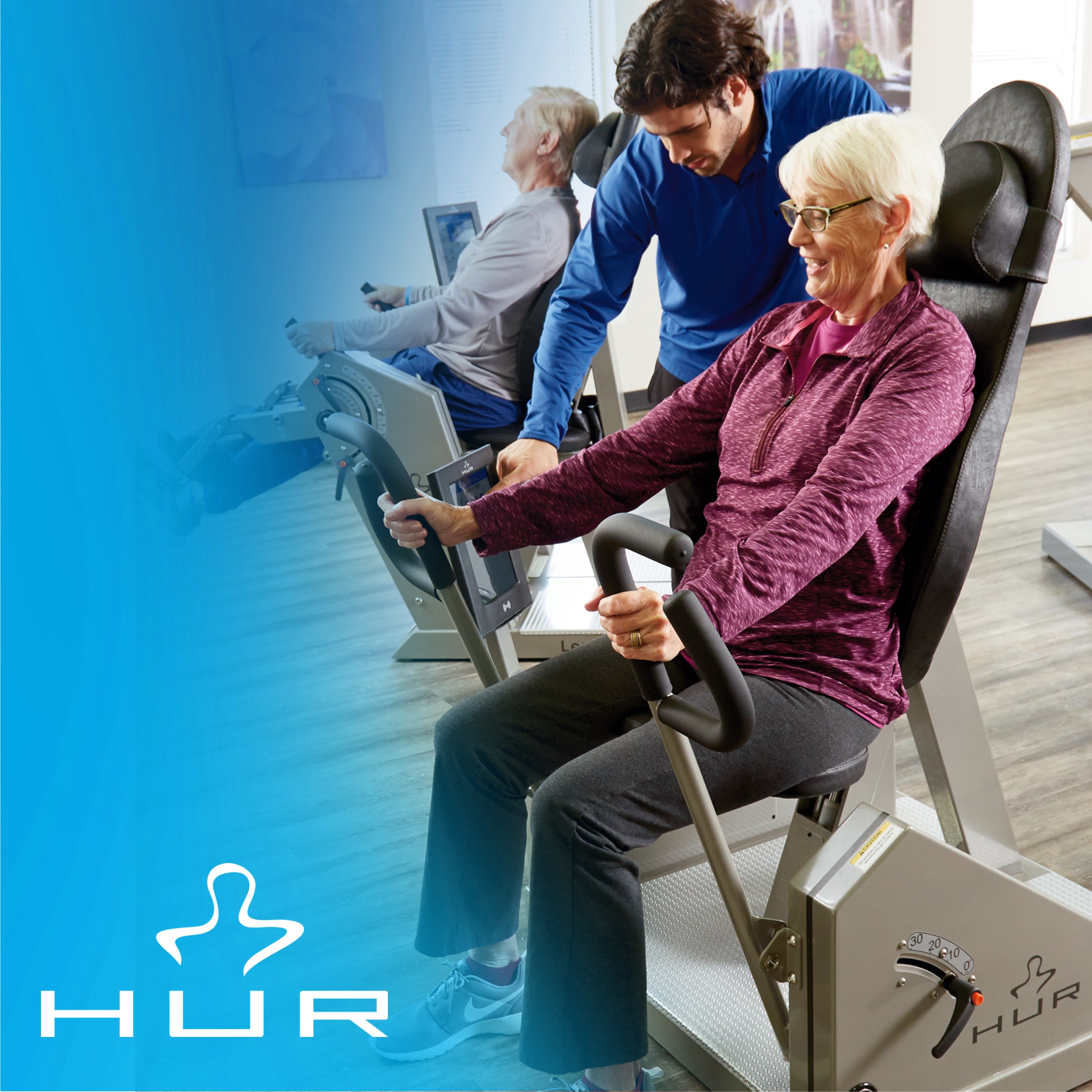 Das finnische Unternehmen HUR entwickelt und produziert vollautomatisierte, computergesteuerte Krafttrainingsgeräte, aber auch baugleiche analoge Gerätevarianten. Der konzentrische/exzentrische Trainingswiderstand ist auf 100g genau einstellbar. Ergänzend hierzu bietet HUR Ausdauergeräte, Körperanalysewagen sowie Testund Trainingsgeräte für Balance- sowie kognitiv/motorisches Training an. Trainingskonzepte für Herz/Kreislauferkrankungen, Diabetes Typ 2, Sturzprävention, und Bluthochdruck runden das Angebot ab.- Paket-Lösung: Einrichtungspaket KGG Grundausstattung