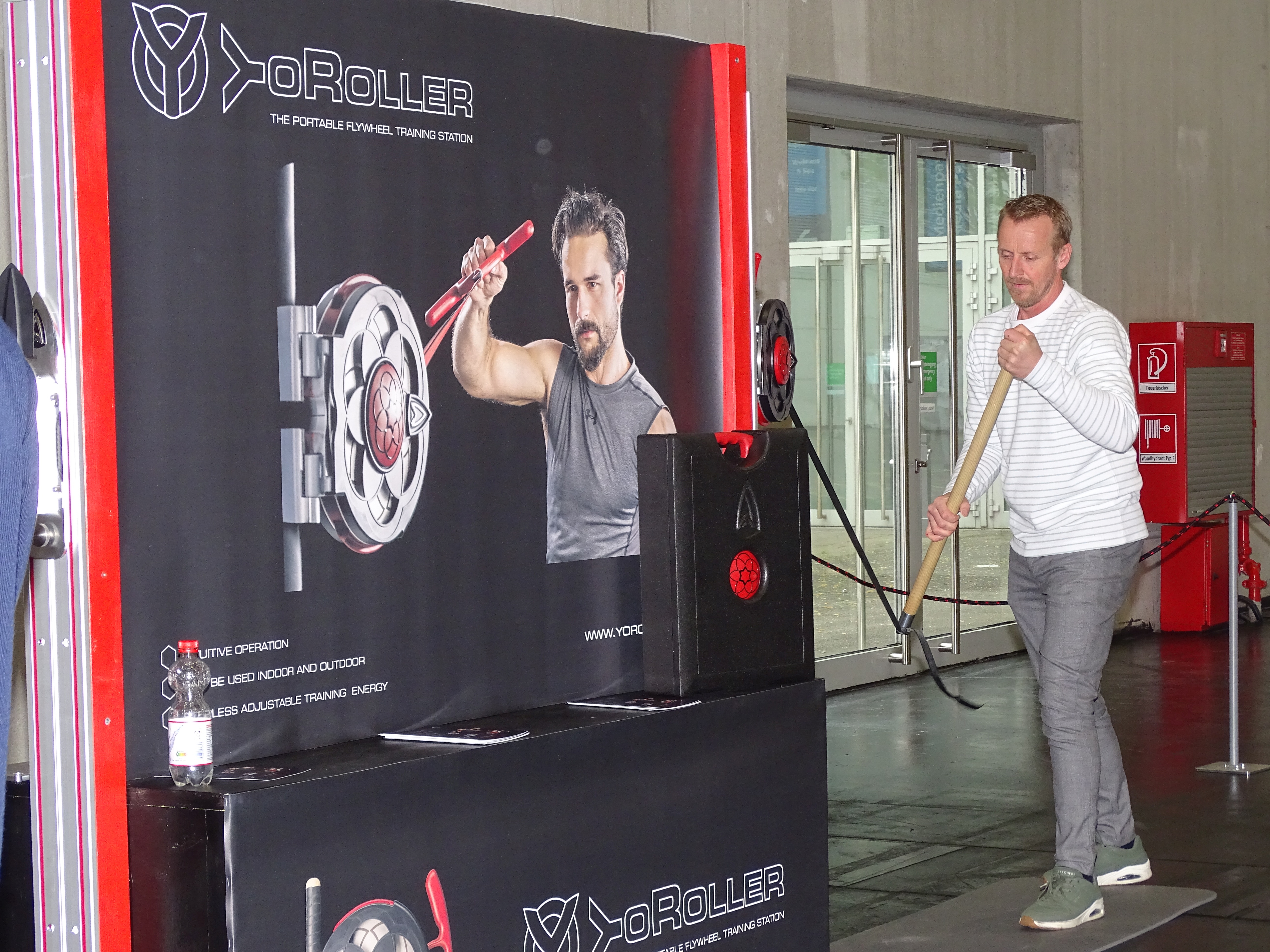 So fand sich in Halle 6 das Unternehmen YoRoller aus Kufstein, Österreich. Serban Andrei, Creative Director und Co-Erfinder, stellte das nur 5 kg wiegende Gerät vor, das auf Fliehkraft basiert und kinetische Energie erzeugt, „was vor allem für eine schnellere Rehabilitation verwendet werden kann“, wie er betonte. Der Widerstand kann stufenlos eingestellt werden.