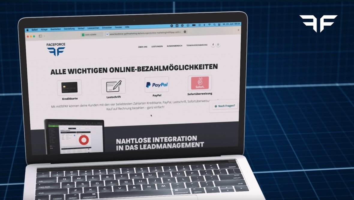 Ein weiterer Teil des FACEFORCE Universums zielt auf direkte Umsätze ab. Auch Umsätze, welche von Mitgliedschaften unabhängig sind. So bietet mitfitPAY die Möglichkeit alles nur Denkbare zu verkaufen. Egal ob Produkte, einmalige Dienstleistungen oder eben Verträge. All dies ist komplett flexibel und agil möglich. Die FACEFORCE Kunden profitieren von dem neuen System durch reibungslos in die bestehende Homepage integrierbare Onlineshops oder aber auch durch die Einbindung von Direktzahlungsmöglichkeiten in Kampagnen.