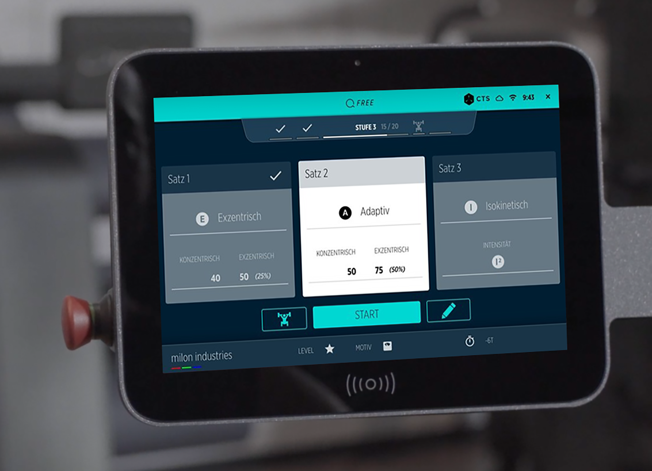 Dabei werden sämtliche Trainingsdaten live in der Software milon CARE erfasst und auf den Displays an den Geräten angezeigt. Das Handling und die visuelle Nutzerführung ist maximal intuitiv und sorgt so für ein effektives Training mit dauerhaft hoher Motivation.