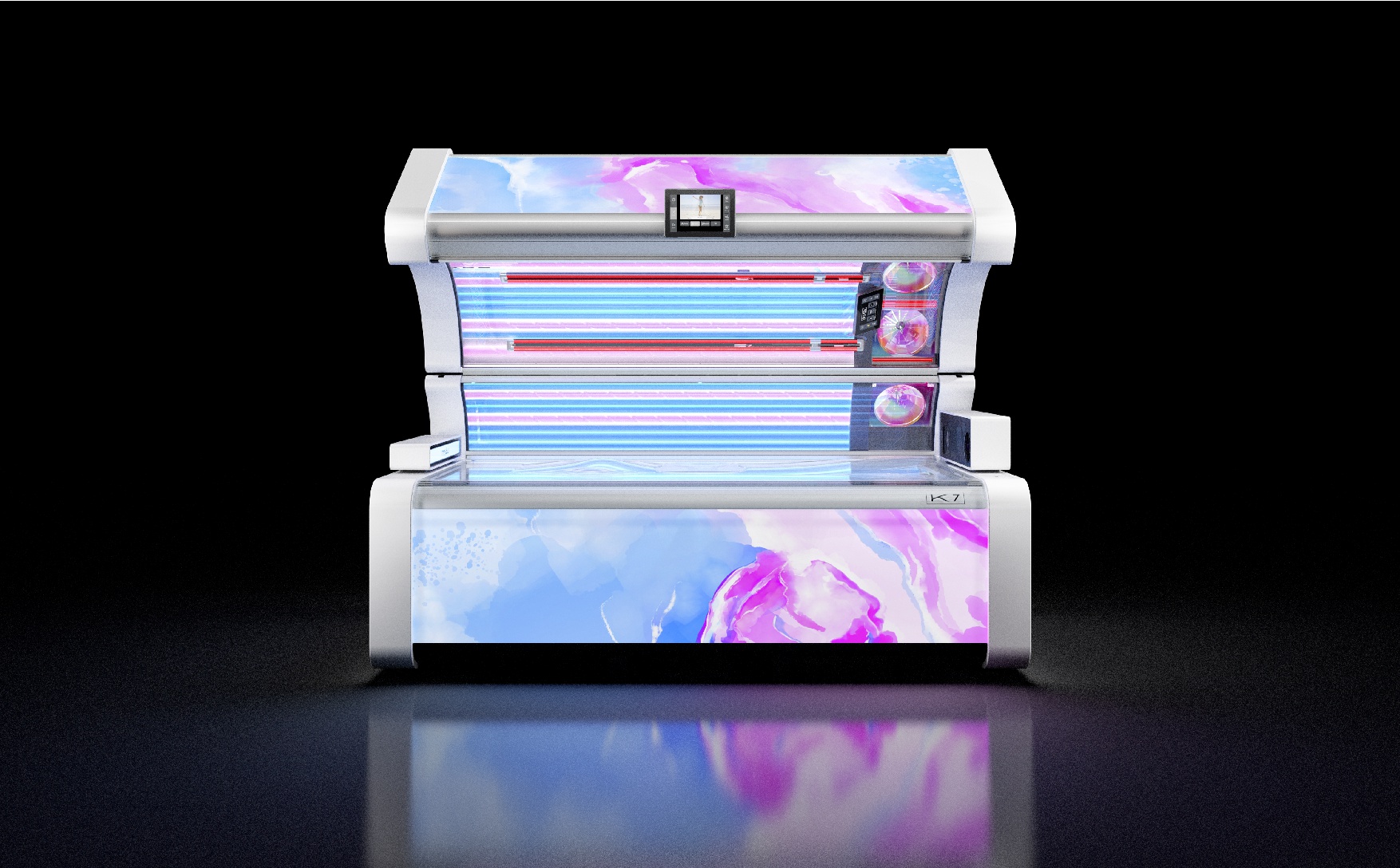 Blickfang der K-Serie in der Premium-Ausstattung ist die Design-Option ‚Infinity Mirror‘, die das Solarium mit atemberaubenden räumlichen Lichteffekten in Szene setzt. Alternativ steht die Option ‚Light Art Panel‘ mit wechselbaren Design-Motiven oder kundenspezifischen Branding-Motiven zur Wahl. Mit einem Footprint von 230 mm Breite und 130 mm Tiefe ist die K-Serie von KBL auch für kleinere Kabinengrößen bestens geeignet und damit ein ideales Angebot für Fitness-Studios.
