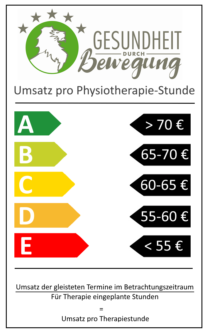 In meiner Tätigkeit als Sachverständiger für Gesundheitsanbieter und in meiner Tätigkeit als Geschäftsführer einer Unternehmensberatung für Therapiezentren möchte ich Ihnen hier einmal einen Einblick geben, was ich bzw. wir als „Sehr gut“ (A= mehr als 70 Euro) und „Ungenügend“ (E = weniger als 55 Euro) bei der Kennzahl „Umsatz pro Therapiestunde“ betrachten. Es sei zu beachten, dass diese Werte für die Physiotherapie gelten.